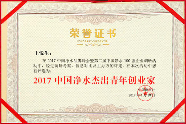 - 熱烈祝賀榮事達(dá)水工業(yè)公司總經(jīng)理王悅生獲評“2017年中國凈水杰出青年創(chuàng)業(yè)家”