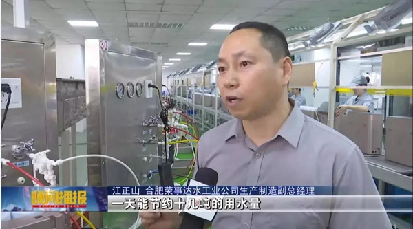 511日—517日為第二十八屆全國城市節約用水宣傳周,為引導廣大市民養成良好的節水習慣,同時推動節水技術在企事業單位發展中的普及,合肥新聞頻道開展“全國城市節約用水宣傳周”系列報道。516日晚2130分,合肥新聞頻道《晚間播報》節目播出新聞《循環利用“節水器”  助力綠色環保》,就校園直飲水節水建設和企業綠色生產做了專題報道,并走進本土知名企業合肥榮事達水工業公司,見證了領先的凈水及節水技術。
