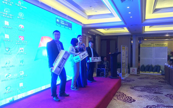 此次財富盛會氛圍高漲,參會人員面對面進行了熱切的討論和交流,相互汲取掘金凈水的財富經驗。會上,許多客戶簽訂協議,開啟了與榮事達的合作之路。為了酬謝廣大客戶,榮事達還專門安排了抽獎環節,純水機、速熱飲水機、管線機等大獎悉數送出。